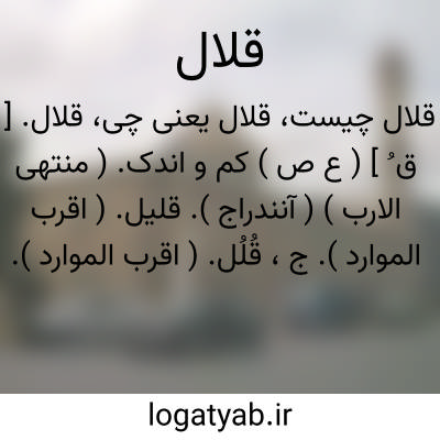 قلال. [ ق ُ ] ( ع ص ) کم و اندک. ( منتهی الارب ) ( آنندراج ). قلیل. ( اقرب الموارد ). ج، قُلُل. ( اقرب الموارد ). رجوع به قَلال شود.