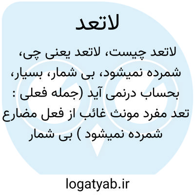 (جمله فعلی: تعد مفرد مونث غائب از فعل مضارع شمرده نمیشود ) بی شمار بسیار. یا لاتعد و لاتحصی. شمرده نمیشود بحساب در نمی آید.