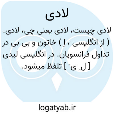 لادی. ( از انگلیسی، اِ ) خاتون و بی بی در تداول فرانسویان. در انگلیسی لیدی [ ل ِ ی ْ ] تلفظ میشود.