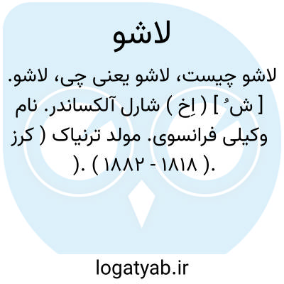 لاشو. [ ش ُ ] ( اِخ ) شارل آلکساندر. نام وکیلی فرانسوی. مولد ترنیاک ( کرز ). ( 1882 - 1818 ).