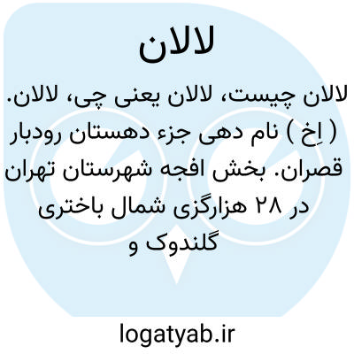 لالان. ( اِخ ) نام دهی جزء دهستان رودبار قصران. بخش افجه شهرستان تهران در 28 هزارگزی شمال باختری گلندوک و هشت هزارگزی خاوری راه شمشک به تهران. دارای 911 تن سکنه. ( فرهنگ جغرافیائی ایران ج 1 ). ( تلفظ محلی لالون است. رجوع به لالون شود ).