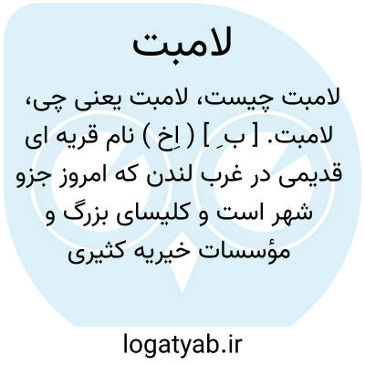 لامبت. [ ب ِ ] ( اِخ ) نام قریه ای قدیمی در غرب لندن که امروز جزو شهر است و کلیسای بزرگ و مؤسسات خیریه کثیری بدانجاست و 200000 تن سکنه دارد.
