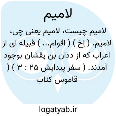 لامیم. ( اِخ ) ( اقوام... ) قبیله ای از اعراب که از ددان بن یقشان بوجود آمدند. ( سفر پیدایش 25: 3 ) ( قاموس کتاب مقدس ).