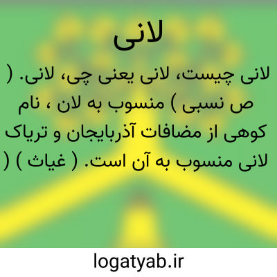 لانی. ( ص نسبی ) منسوب به لان، نام کوهی از مضافات آذربایجان و تریاک لانی منسوب به آن است. ( غیاث ) ( آنندراج ). رجوع به لان شود.