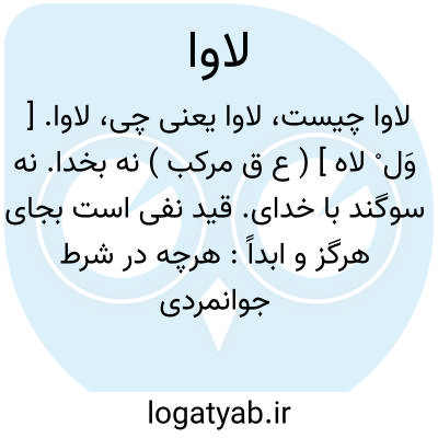 لاوا. [ وَل ْ لاه ] ( ع ق مرکب ) نه بخدا. نه سوگند با خدای. قید نفی است بجای هرگز و ابداً: