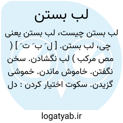 لب بستن. [ ل َ ب َ ت َ ] ( مص مرکب ) لب نگشادن. سخن نگفتن. خاموش ماندن. خموشی گزیدن. سکوت اختیار کردن: