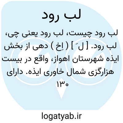 لب رود. [ ل َ ] ( اِخ ) دهی از بخش ایذه شهرستان اهواز، واقع در بیست هزارگزی شمال خاوری ایذه. دارای 130 تن سکنه شیعه لری و بختیاری. محصول آن غلات و شغل اهالی زراعت و گله داری و راه آن مالرو است. ( فرهنگ جغرافیائی ایران ج 6 ).