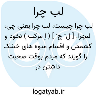 لبچرا. [ ل َ چ َ ] ( اِ مرکب ) نخود و کشمش و اقسام میوه های خشک را گویند که مردم بوقت صحبت داشتن در شبهای زمستان در میان ریزند و کم کم خورند و صحبت دارند. ( از برهان ). شب چره. لب چره. ( آنندراج ). || مطلق خوردنی. || علف چاروا. ( برهان ).
