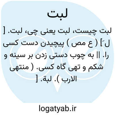 لبت. [ ل َ] ( ع مص ) پیچیدن دست کسی را. || به چوب دستی زدن بر سینه و شکم و تهی گاه کسی. ( منتهی الارب ).
