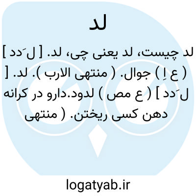 لد. [ ل َدد ] ( ع مص ) لدود.دارو در کرانه دهن کسی ریختن. ( منتهی الارب ). دارو به یک سوی دهن فروگذاشتن. ( تاج المصادر ). || خصومت کردن با کسی. ( منتهی الارب ). جدال و خصومت کردن. ( منتخب اللغات ). || بر خصم غلبه کردن در جدال. ( تاج المصادر ). || بازداشتن کسی را. || بند کردن کسی را. ( منتهی الارب ).