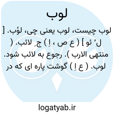 لوب. ( ع اِ ) گوشت پاره ای که در دیگ بگردد. || مگس انگبین. || ( ص ) ابل ٌ لوب؛ شتران تشنه دور از آب.نخل ٌ لوب؛ خرمابن تشنه دور از آب. ( منتهی الارب ).