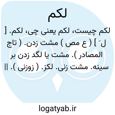 لکم. [ ل َ ] ( ع مص ) مشت زدن. ( تاج المصادر ). مشت یا لگد زدن بر سینه. مشت زنی. لکز. ( زوزنی ). || راندن. || دور کردن. ( منتهی الارب ).