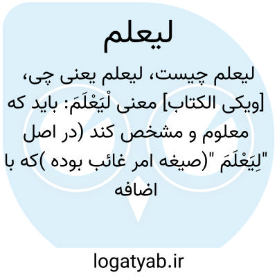 [ویکی الکتاب] معنی لْیَعْلَمَ: باید که معلوم و مشخص کند (در اصل "لِیَعْلَمَ "(صیغه امر غائب بوده )که با اضافه شدن واو برای سهولت لام ساکن شده است )