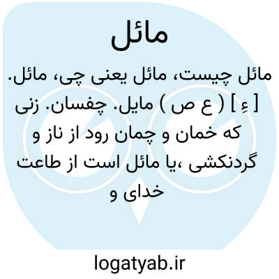 ( اسم و صفت ) ۱- گراینده بچیزی میل کننده راغب شایق: خری چند مایل به جلهای رنگین ددی چند راغب به آفت رسانی. ( وحشی. چا. امیر کبیر ۲ ) ۲۶۹- خمیده برگردیده. ۳- نزدیک به متمایل به: کتی قهوه یی وشلواری زرد رنگ مایل بسبز پوشیده بود.