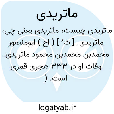 ماتریدی. [ ت ُ ] ( اِخ ) ابومنصور محمدبن محمدبن محمود ماتریدی. وفات او در 333 هجری قمری است. ( یادداشت به خط مرحوم دهخدا ). دانشمند بسیار معروف حنفی مؤلف «کتاب التوحید» و «کتاب المقامات » و «کتاب رد اهل الادلة» و «کتاب بیان اوهام المعتزله » و «تأویلات القرآن » و «رد الاصول الخمسة لابی محمد الباهلی » و «ردالامامة لبعض الروافض » و «الرد علی القرامطة» و «مآخذالشرایع» و «الحبل فی اصول الفقه » و «شرح الفقه الاکبر امام ابی حنیفة النعمان » و میان وی و ابوالقاسم سمرقندی درباره اختلاف میان اهل سنت و معتزلیان و کرامیان در سمرقند مناظره بوده است. ( از تعلیقات تاریخ بیهقی چ سعید نفیسی ج 2 ص 964 ). رجوع به تاریخ بیهقی چ سعید نفیسی ج 2 و کتاب القند فی تاریخ سمرقند نجم الدین ابوحفص عمربن محمد نسفی و کتاب ترکستان پیش از دوره استیلای مغول تألیف بارتولد و لباب الالباب شود.