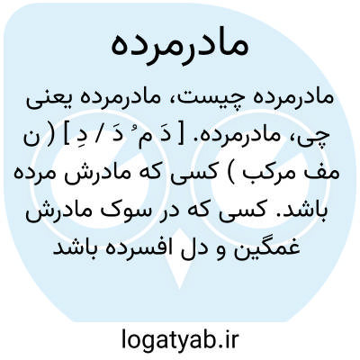 ( اسم ) ۱- کسی که مادرش مرده باشد. ۲- کلمه ایست که در مقام اظهار تاسف و همدردی یا تحقیر آمیخته بدلسوزی بشخصی گویند و گاه مادر در مقام دلسوزی فرزندخویش را که احیانا گرفتار مخمصه و دچار زحمت شده بدین عنوان خطاب کند: مثل مادر مرده بطور تب ناکی آن میکشید...