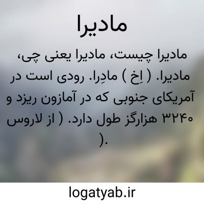 مادیرا. ( اِخ ) مادِرا. رودی است در آمریکای جنوبی که در آمازون ریزد و 3240 هزارگز طول دارد. ( از لاروس ).