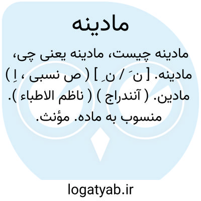 ( صفت ) ۱- منسوب به ماده مونث مقابل نرینه مذکر: پس آنگاه که نهاد آن مادینه را گفت: ای پروردگار من. بدرستی که من نهادم آنرا مادینه و خدای داناتر است بانچه نهاد و نیست نرینه چون مادینه و من نام نهادم او را مادینه...