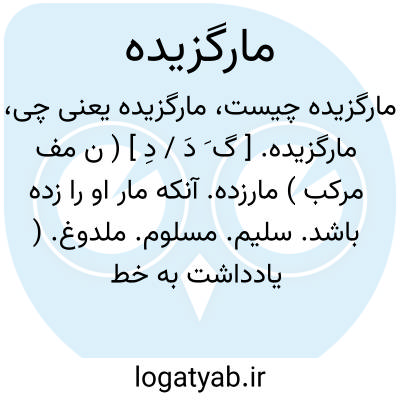 مارگزیده. [ گ َ دَ / دِ ] ( ن مف مرکب ) مارزده. آنکه مار او را زده باشد. سلیم. مسلوم. ملدوغ. ( یادداشت به خط مرحوم دهخدا ). سلیم. ( ترجمان القرآن ) ( دهار ). لدیغ. ( منتهی الارب ) ( دهار ). ملدوغ. ( منتهی الارب ):