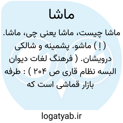 ماشا. ( اِ ) ماشو. پشمینه و شالکی درویشان. ( فرهنگ لغات دیوان البسه نظام قاری ص 204 ):