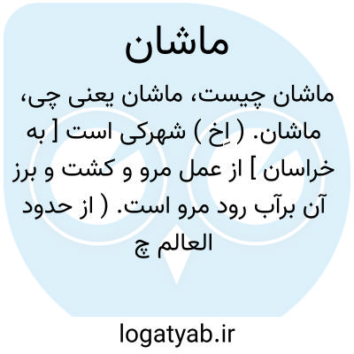 ماشان. ( اِخ ) شهرکی است [ به خراسان ] از عمل مرو و کشت و برز آن برآب رود مرو است. ( از حدود العالم چ دانشگاه ص 94 ).