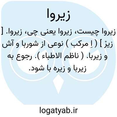 زیروا. [ زیرْ ] ( اِ مرکب ) نوعی از شوربا و آش و زیربا. ( ناظم الاطباء ). رجوع به زیربا و زیره با شود.