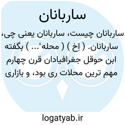 ساربانان. ( اِخ ) ( محله ٔ... ) بگفته ابن حوقل جغرافیادان قرن چهارم مهم ترین محلات ری بود، و بازاری مهم داشت که دکانها و کاروانسراهای آن همیشه پر از کالا بود، و رودی بنام جیلانی از آن محله عبور میکرد. رجوع به ترجمه سرزمینهای خلافت شرقی لسترنج ص 232 شود.