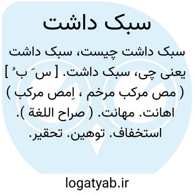 سبک داشت. [ س َ ب ُ ] ( مص مرکب مرخم، اِمص مرکب ) اهانت. مهانت. ( صراح اللغة ). استخفاف. توهین. تحقیر. تخفیف: رخص طلب کردن سبکداشت فرمان حق بود و دوستان حق... فرمان دوستان را سبک ندارند. ( هجویری ). و بواسطه ترک ادب موافقت زمان درویشان و سبک داشت نفس اولیأاﷲ از شرف صحبت ایشان محروم شد. ( انیس الطالبین ص 46 ). رجوع به سبک داشتن شود.