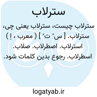 سترلاب. [ س ُ ت ُ ] ( معرب، اِ ) استرلاب. اصطرلاب. صلاب. اسطرلاب. رجوع بدین کلمات شود.