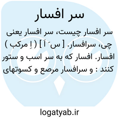 سرافسار. [ س َ اَ ] ( اِ مرکب ) افسار. افسار که به سر اسب و ستور کنند: و سرافسار مرصع و کسوتهای گرانمایه. ( راحةالصدور راوندی ). و اسب خاصی با سرافسار مرصع بستد و برنشست. ( راحةالصدور راوندی ). در جمله تحف و مبارکه بدو فرستاد ده سر اسب تازی بود با زین سرافسار زر. ( ترجمه تاریخ یمینی چ 1 تهران ص 221 ). و اعطاه بغلة بسرج و سرافسار ذهب و الف دینار. ( عیون الانباء ج 2 ص 178 ). رجوع به افسار شود.