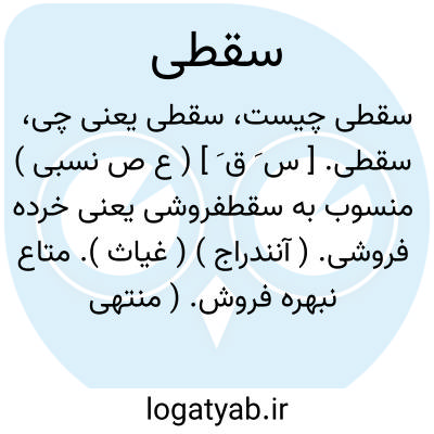 سقطی. [ س َ ق َ ] ( ع ص نسبی ) منسوب به سقطفروشی یعنی خرده فروشی. ( آنندراج ) ( غیاث ). متاع نبهره فروش. ( منتهی الارب ). این انتساب فروش چیزهای بی اهمیت را میرساند مانند خرمهره و غیره. ( الانساب ).