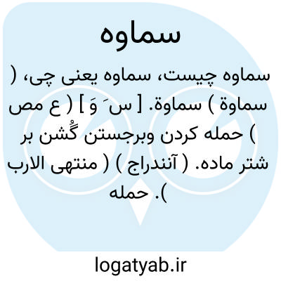 ( سماوة ) سماوة. [ س َ وَ ] ( ع مص ) حمله کردن وبرجستن گُشن بر شتر ماده. ( آنندراج ) ( منتهی الارب ). حمله کردن فحل بر ماده. ( دهار ) ( تاج المصادر بیهقی ).حمله کردن گُشن بر شتر مادگان و برجستن بر آنها. ( از ناظم الاطباء ). || ( اِ ) پرده ای که از سقف خانه درکشیده باشند. ( ناظم الاطباء ) ( از آنندراج ) ( منتهی الارب ). سقف خانه. ( از دهار ). || کالبد هر چیزی. ( منتهی الارب ) ( آنندراج ) ( ناظم الاطباء ).