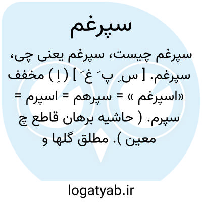 بر آن نکوی سپرغم بر آن خجسته نهال.فرخی.خورشید دلالت دارد بر طعامها وزُهره بر سپرغمها و عطارد بر حبوب. ( التفهیم ). هر آنگاه که آن محدث را بسوی گرگان فرستادی [ مسعود ] بهانه آوردی که در آنجا سپرغم، ترنج و... آورده می آید.( تاریخ بیهقی چ ادیب ص 129 ). همه سپرغمهای آن از زرو سیم ساخته. ( تاریخ بیهقی چ ادیب ص 403 ).