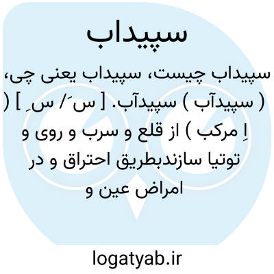 ( سپیدآب ) سپیدآب. [ س َ/ س ِ ] ( اِ مرکب ) از قلع و سرب و روی و توتیا سازندبطریق احتراق و در امراض عین و جایهای دیگر بکار برند و اسپیداج معرب آن است. ( انجمن آرا ):