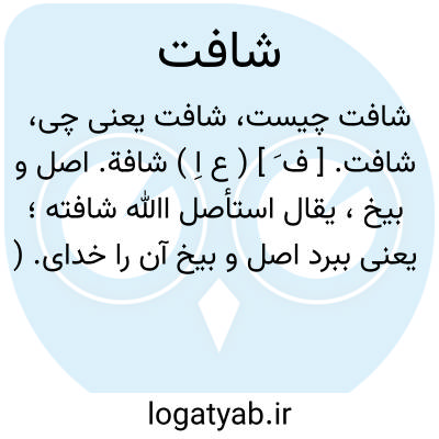 شافت. [ ف َ ] ( ع اِ ) شافة. اصل و بیخ، یقال استأصل اﷲ شافته؛ یعنی ببرد اصل و بیخ آن را خدای. ( منتهی الارب ): امید بفضل اله و اقبال پادشاه چنانکه عنقریب سورت ظفر نازل شود... و دفع آفت و استیصال شافت ایشان حاصل گردد. ( المضاف الی بدایع الازمان ص 38 ). و رجوع به شافة شود.