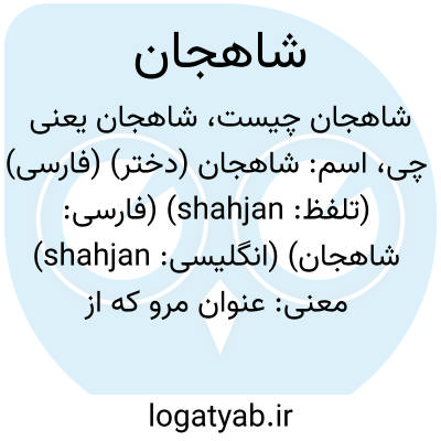 اسم: شاهجان (دختر) (فارسی) (تلفظ: shahjan) (فارسی: شاهجان) (انگلیسی: shahjan)