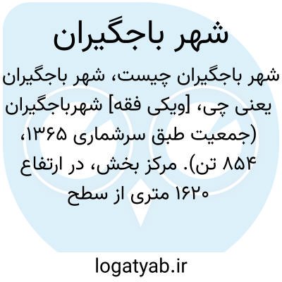 [ویکی فقه] شهرباجگیران (جمعیت طبق سرشماری ۱۳۶۵، ۸۵۴ تن). مرکز بخش، در ارتفاع ۱۶۲۰ متری از سطح دریا در شمال غربی کوه سَمْخُل (مرتفعترین قله ۲۶۰، ۲ متر) واقع است.