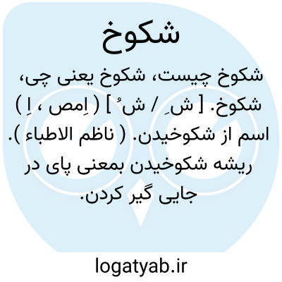شکوخ. [ ش ِ / ش ُ ] ( اِمص، اِ ) اسم از شکوخیدن. ( ناظم الاطباء ). ریشه شکوخیدن بمعنی پای در جایی گیر کردن. آشکوخیدن. || قدم به غلط برداشتن. لغزیدن. ( فرهنگ لغات شاهنامه ). افتادگی. سقوط.( ناظم الاطباء ). بسر درآمدگی. ( برهان ) ( آنندراج ). کسی که پایش به چیزی درآید و به سر درافتد، گویند: بشکوخید. ( فرهنگ اوبهی ) ( از فرهنگ اسدی ). || لغزش. ( ناظم الاطباء ) ( برهان ) ( آنندراج ):