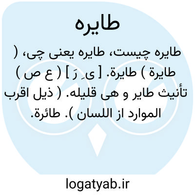 ( طایرة ) طایرة. [ ی ِ رَ ] ( ع ص ) تأنیث طایر و هی قلیله. ( ذیل اقرب الموارد از اللسان ). طائرة.