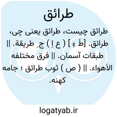 طرائق. [طَ ءِ ] ( ع اِ ) ج ِ طریقة. || طبقات آسمان. || فرق مختلفه الاَهواء. || ( ص ) ثوب طرائق؛ جامه کهنه. ( منتهی الارب ) ( آنندراج ).