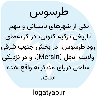 طرسوس. [ طَ رَ / طَ ] ( اِخ ) شهری است مر مسلمانان را که بسیار ارزانی و فراخ سالی دارد، در دست ارامنه بود، باز در دست مسلمانان افتاد. ( منتهی الارب ) ( آنندراج ). نام شهری به ساحل بحرالشام، واقع در جنوب شرقی آسیةالصغری، نزدیک مرسین. شهری از ترکیه بر ساحل سیحون به مغرب اذنه و این موطن قدیس بلس حواری است، دارای 22 هزار سکنه.