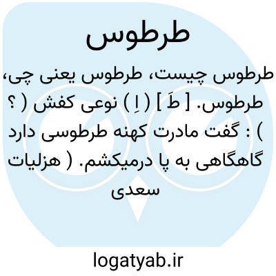 طرطوس. [ طَ ] ( اِ ) نوعی کفش ( ؟ ): گفت مادرت کهنه طرطوسی دارد گاهگاهی به پا درمیکشم. ( هزلیات سعدی ).