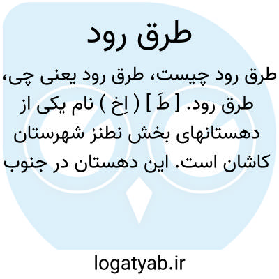 طرق رود. [ طَ ] ( اِخ ) نام یکی از دهستانهای بخش نطنز شهرستان کاشان است. این دهستان در جنوب نطنز در دامنه و دره های کوه کرکس در طول و طرفین جاده شوسه اردستان به مورچه خورت واقع است. هوای آن سردسیر، آب آن از چشمه سار و زه آب رودخانه و قنوات.محصول عمده آن انگور و غلات و حبوبات و انواع میوه جات سردسیری است. این دهستان از 15 آبادی و چندین مزرعه تشکیل شده و جمعیت آن در حدود 14 هزار تن و قراء مهم آن بشرح زیر است: قصبه طرق کلهرود، سه، طار، کنته، ابیازن، نیه. ( از فرهنگ جغرافیایی ایران ج 3 ).