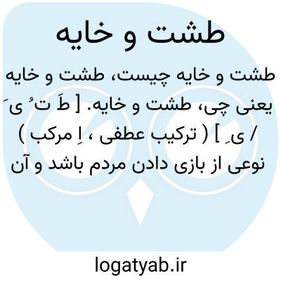 طشت و خایه. [ طَ ت ُ ی َ / ی ِ ] ( ترکیب عطفی، اِ مرکب ) نوعی از بازی دادن مردم باشد و آن چنان است که درون تخم مرغی را خالی کنند و از شبنم پر سازند و طشتی را درآفتاب گذارند و تخم مرغ را در طشت نهند، چون طشت گرم شود تخم مرغ به اصول راه بالا به رقص درآمده بر هوا رود. ( برهان ) ( آنندراج ). بازی طشت و خایه آنکه مشعبدان خایه مرغ را از سیماب پر کرده ( در طشتی ) مقابل آفتاب گذارند، چون طشت از حرارت گرم شود، خایه از طشت بیرون میرود. ( از حاشیه دیوان خاقانی ):