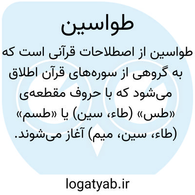 [ویکی فقه] طواسین به سوره هایی گفته می شود که با «طس» شروع می شوند. مانند: سوره شعراء، سوره نمل، سوره قصص.