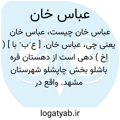 عباس خان. [ ع َب ْ با ] ( اِخ ) دهی است از دهستان قره باشلو بخش چاپشلو شهرستان مشهد. واقع در 69هزارگزی شمال باختری مشهد و کنار کشف رود. ناحیه ای است واقع در جلگه و آب و هوای آن معتدل است. 28 تن سکنه دارد. آب آن از قنات تأمین میشود. محصولات آن غلات، چغندر و کنجد است. اهالی به کشاورزی اشتغال دارند.راه مالرو دارد. ( از فرهنگ جغرافیائی ایران ج 9 ).