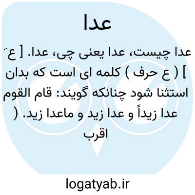 عدا. [ ع َ ] ( ع حرف ) کلمه ای است که بدان استثنا شود چنانکه گویند: قام القوم عدا زیداً و عدا زید و ماعدا زید. ( اقرب الموارد ).
