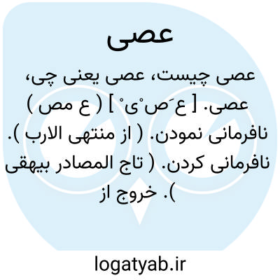 عصی. [ ع َ صا ] ( ع فعل، اِ ) صیغه ماضی از مصدر عَصْی که با در نظر گرفتن آیه کریمه «و عصی آدم ربه فغوی » ( قرآن 121/20 ) یعنی آدم ابوالبشر بر خدای خود عصیان کرد و سرپیچی نمود پس گمراه شد، در فارسی بعنوان اسم بکار رفته است: