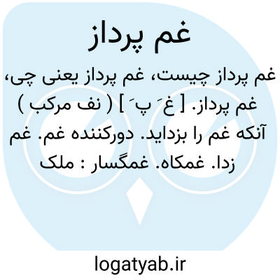 غم پرداز. [ غ َ پ َ ] ( نف مرکب ) آنکه غم را بزداید. دورکننده غم. غم زدا. غمکاه. غمگسار: