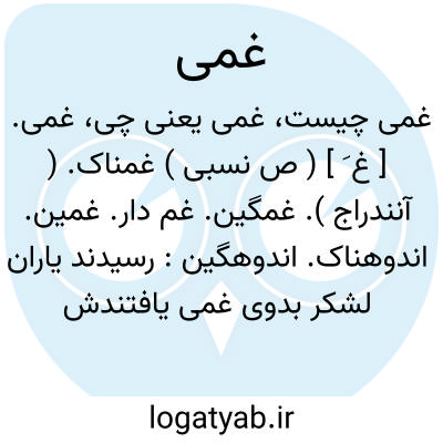 غمی. [ غ َ ] ( ص نسبی ) غمناک. ( آنندراج ). غمگین. غم دار. غمین. اندوهناک. اندوهگین: